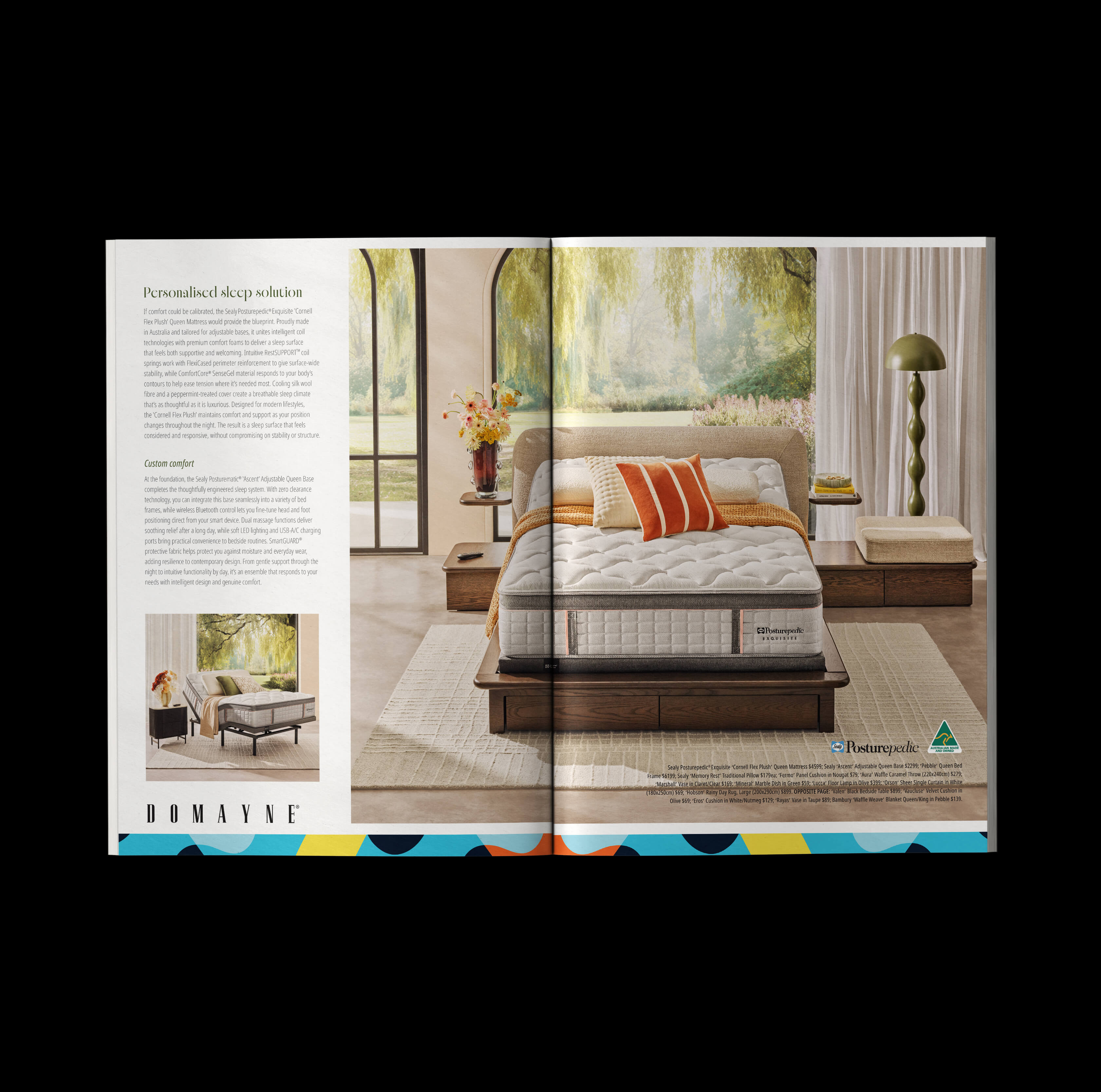 Creatively led the development of Domayne’s mattress campaign from concept through to print production. The campaign was designed to satisfy key client objectives while resonating with the brand’s target audience, balancing commercial priorities with a strong, cohesive visual direction.